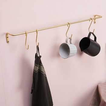 Estante de pared de cocina de latón de diseño moderno, barra colgante de pared con ganchos para ollas, toallero plano para baño, toallero para colgar